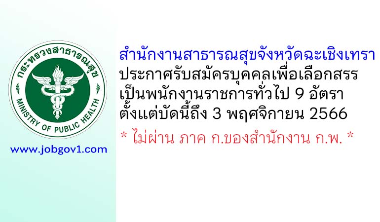 สำนักงานสาธารณสุขจังหวัดฉะเชิงเทรา รับสมัครบุคคลเพื่อเลือกสรรเป็นพนักงานราชการทั่วไป 9 อัตรา ตั้งแต่บัดนี้ถึง 3 พฤศจิกายน 2566