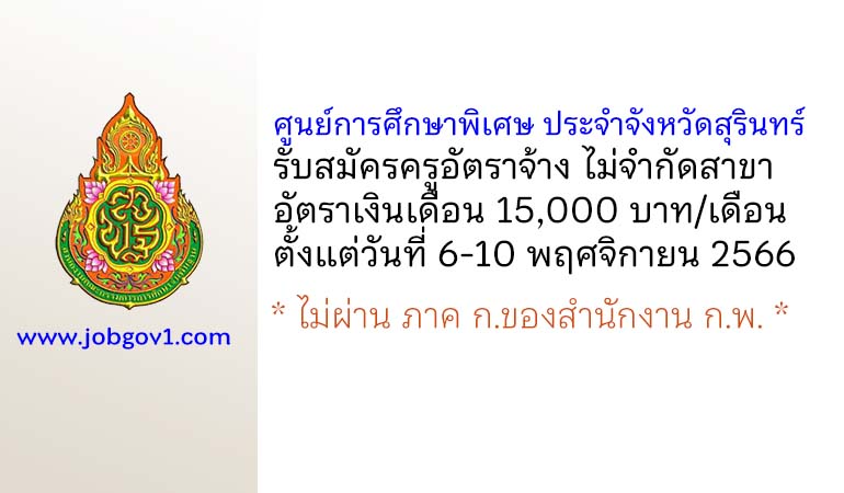 ศูนย์การศึกษาพิเศษ ประจำจังหวัดสุรินทร์ รับสมัครครูอัตราจ้าง ไม่จำกัดสาขา ตั้งแต่วันที่ 6-10 พฤศจิกายน 2566