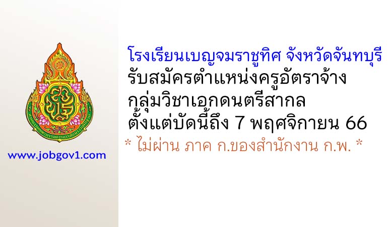 โรงเรียนเบญจมราชูทิศ จังหวัดจันทบุรี รับสมัครครูอัตราจ้าง กลุ่มวิชาเอกดนตรีสากล ตั้งแต่บัดนี้ถึง 7 พฤศจิกายน 2566