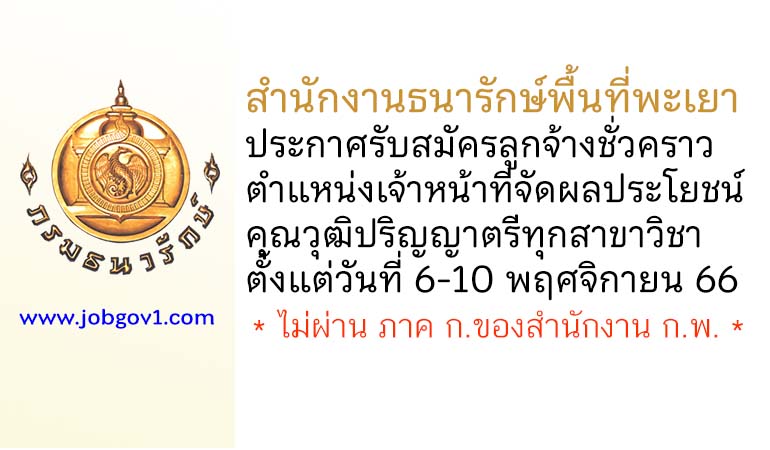 สำนักงานธนารักษ์พื้นที่พะเยา รับสมัครลูกจ้างชั่วคราว ตำแหน่งเจ้าหน้าที่จัดผลประโยชน์ ตั้งแต่วันที่ 6-10 พฤศจิกายน 2566