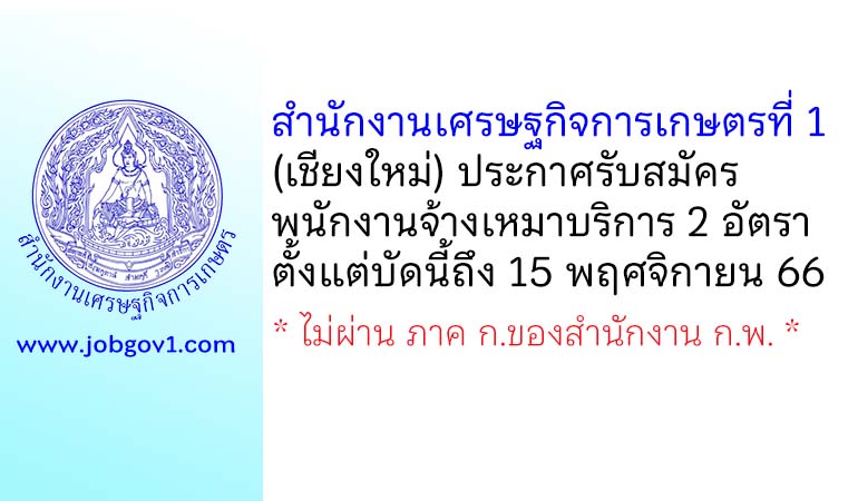 สำนักงานเศรษฐกิจการเกษตรที่ 1 รับสมัครพนักงานจ้างเหมาบริการ 2 อัตรา ตั้งแต่บัดนี้ถึง 15 พฤศจิกายน 2566