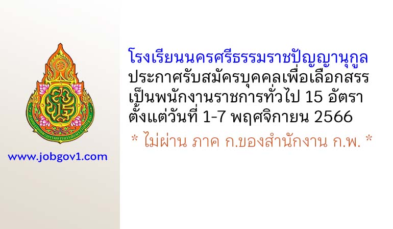 โรงเรียนนครศรีธรรมราชปัญญานุกูล รับสมัครบุคคลเพื่อเลือกสรรเป็นพนักงานราชการทั่วไป 15 อัตรา ตั้งแต่วันที่ 1-7 พฤศจิกายน 2566