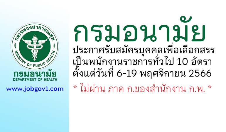 กรมอนามัย รับสมัครบุคคลเพื่อเลือกสรรเป็นพนักงานราชการทั่วไป 10 อัตรา ตั้งแต่วันที่ 6-19 พฤศจิกายน 2566