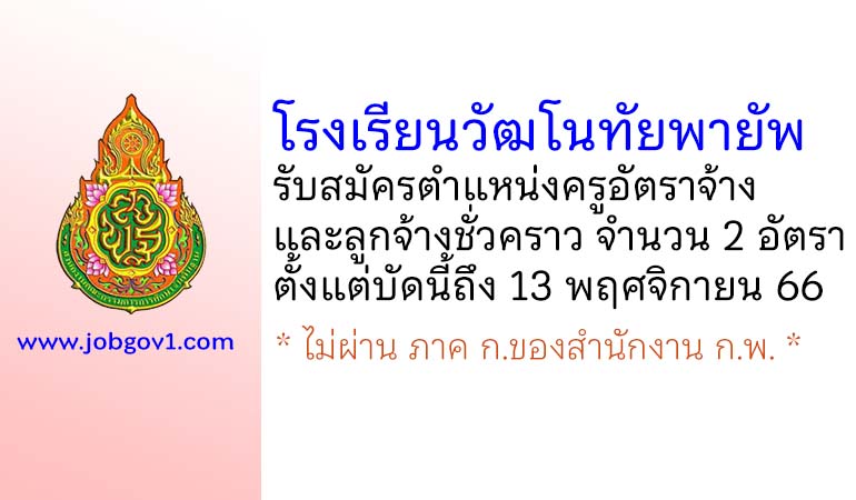 โรงเรียนวัฒโนทัยพายัพ รับสมัครครูอัตราจ้าง และลูกจ้างชั่วคราว 2 อัตรา ตั้งแต่บัดนี้ถึง 13 พฤศจิกายน 2566