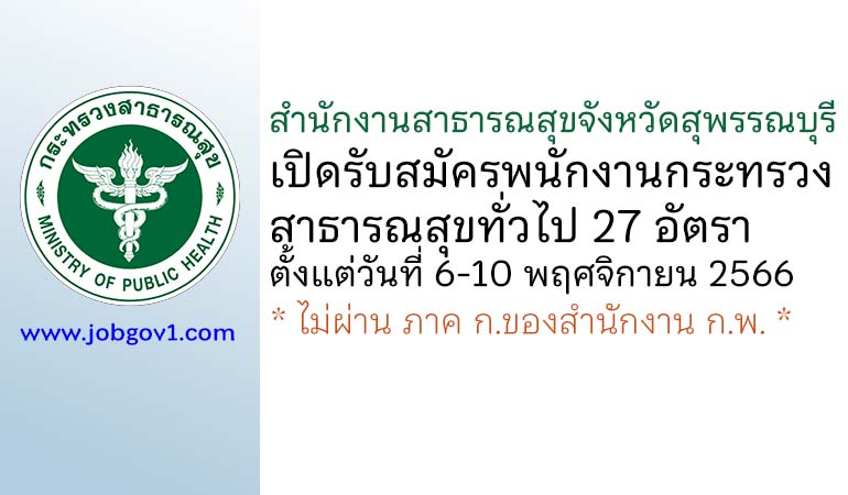สำนักงานสาธารณสุขจังหวัดสุพรรณบุรี รับสมัครพนักงานกระทรวงสาธารณสุขทั่วไป 27 อัตรา ตั้งแต่วันที่ 6-10 พฤศจิกายน 2566