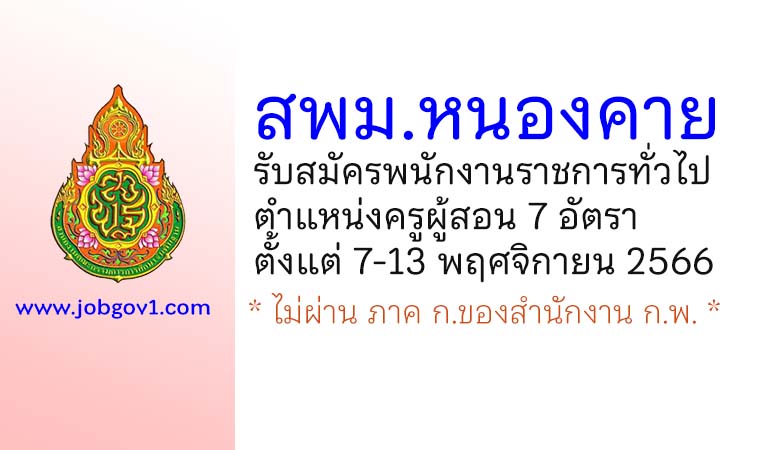 สพม.หนองคาย รับสมัครพนักงานราชการทั่วไป ตำแหน่งครูผู้สอน 7 อัตรา ตั้งแต่วันที่ 7-13 พฤศจิกายน 2566