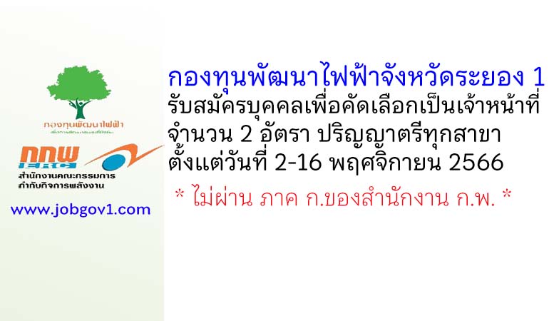 กองทุนพัฒนาไฟฟ้าจังหวัดระยอง 1 รับสมัครบุคคลเพื่อคัดเลือกเป็นเจ้าหน้าที่ 2 อัตรา ตั้งแต่วันที่ 2-16 พฤศจิกายน 2566