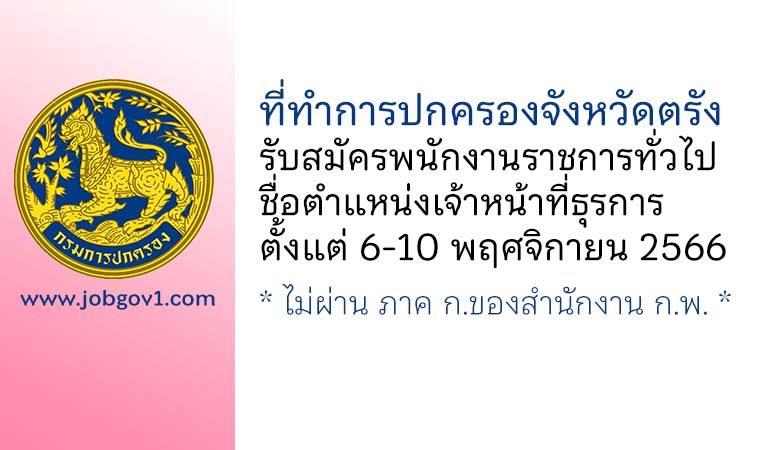 ที่ทำการปกครองจังหวัดตรัง รับสมัครพนักงานราชการทั่วไป ตำแหน่งเจ้าหน้าที่ธุรการ ตั้งแต่วันที่ 6-10 พฤศจิกายน 2566
