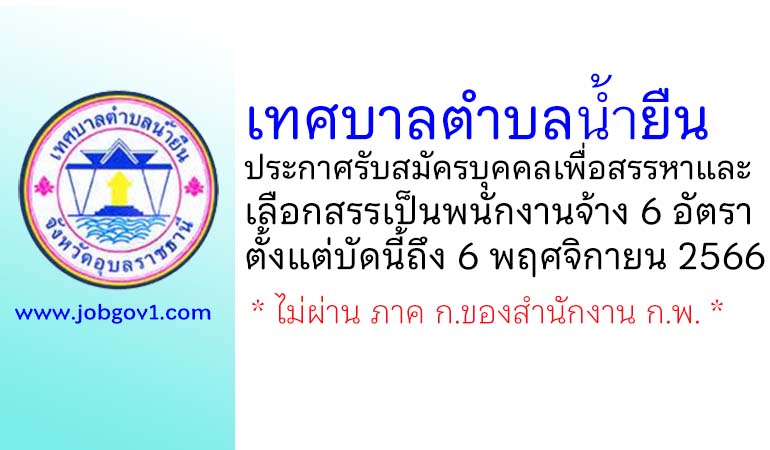 เทศบาลตำบลน้ำยืน รับสมัครบุคคลเพื่อสรรหาและเลือกสรรเป็นพนักงานจ้าง 6 อัตรา ตั้งแต่บัดนี้ถึง 6 พฤศจิกายน 2566