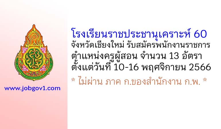 โรงเรียนราชประชานุเคราะห์ 60 จังหวัดเชียงใหม่ รับสมัครพนักงานราชการ ตำแหน่งครูผู้สอน 13 อัตรา ตั้งแต่วันที่ 10-16 พฤศจิกายน 2566