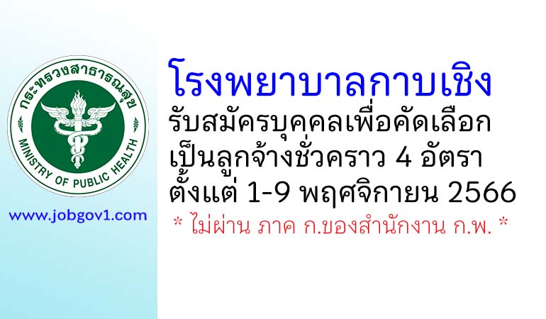 โรงพยาบาลกาบเชิง รับสมัครบุคคลเพื่อคัดเลือกเป็นลูกจ้างชั่วคราว 4 อัตรา ตั้งแต่วันที่ 1-9 พฤศจิกายน 2566