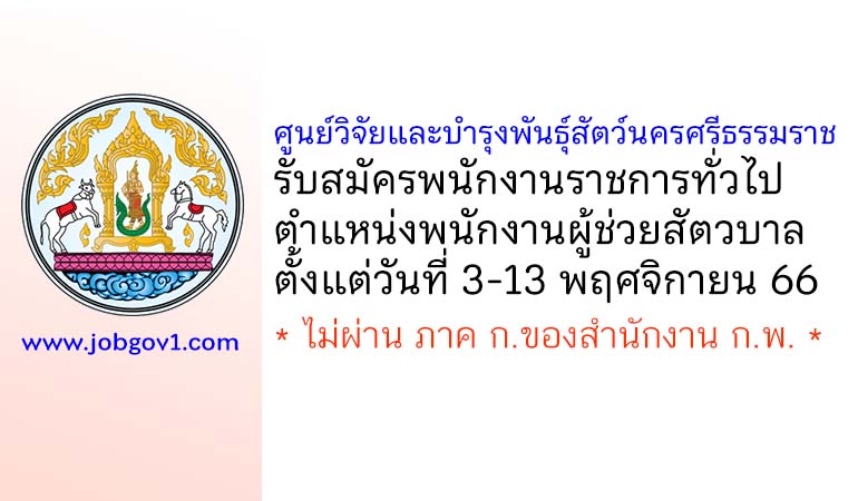 ศูนย์วิจัยและบำรุงพันธุ์สัตว์นครศรีธรรมราช รับสมัครพนักงานราชการทั่วไป ตำแหน่งพนักงานผู้ช่วยสัตวบาล ตั้งแต่วันที่ 3-13 พฤศจิกายน 2566