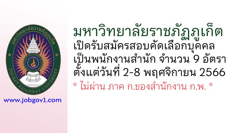 มหาวิทยาลัยราชภัฏภูเก็ต รับสมัครสอบคัดเลือกบุคคลเป็นพนักงานสำนัก 9 อัตรา ตั้งแต่วันที่ 2-8 พฤศจิกายน 2566