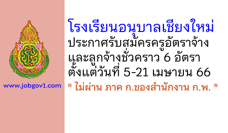 โรงเรียนอนุบาลเชียงใหม่ รับสมัครครูอัตราจ้าง และลูกจ้างชั่วคราว 6 อัตรา ตั้งแต่วันที่ 5-21 เมษายน 2566