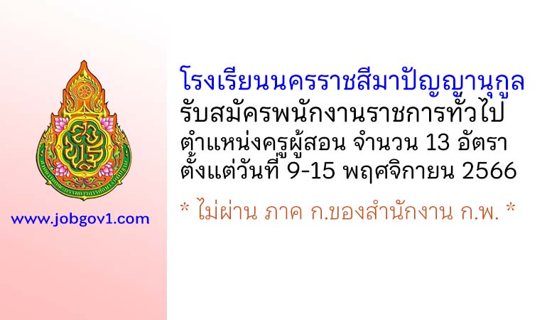 โรงเรียนนครราชสีมาปัญญานุกูล รับสมัครพนักงานราชการทั่วไป ตำแหน่งครูผู้สอน 13 อัตรา ตั้งแต่วันที่ 9-15 พฤศจิกายน 2566