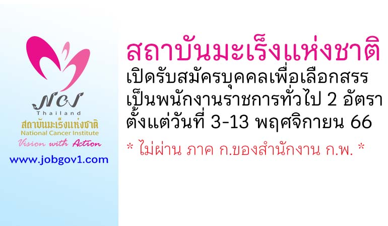 สถาบันมะเร็งแห่งชาติ รับสมัครบุคคลเพื่อเลือกสรรเป็นพนักงานราชการทั่วไป 2 อัตรา ตั้งแต่วันที่ 3-13 พฤศจิกายน 2566