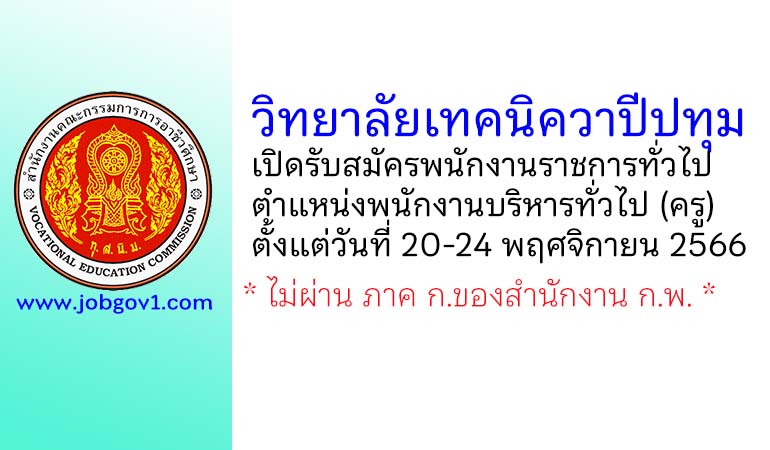 วิทยาลัยเทคนิควาปีปทุม รับสมัครพนักงานราชการทั่วไป ตำแหน่งพนักงานบริหารทั่วไป (ครู) ตั้งแต่วันที่ 20-24 พฤศจิกายน 2566