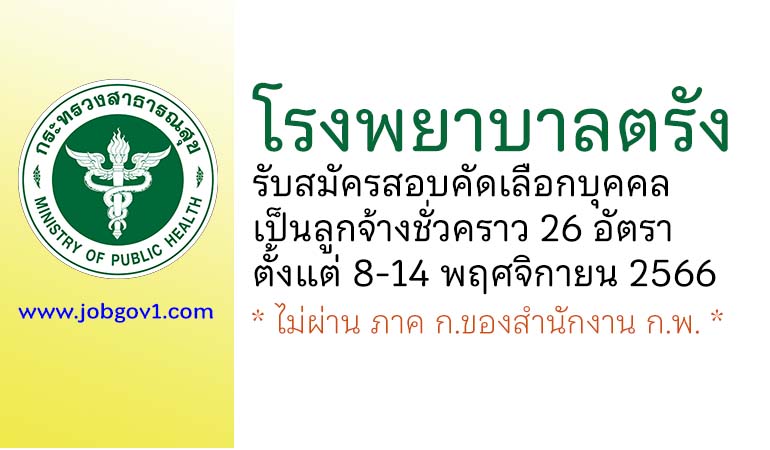โรงพยาบาลตรัง รับสมัครสอบคัดเลือกบุคคลเป็นลูกจ้างชั่วคราว 26 อัตรา ตั้งแต่วันที่ 8-14 พฤศจิกายน 2566