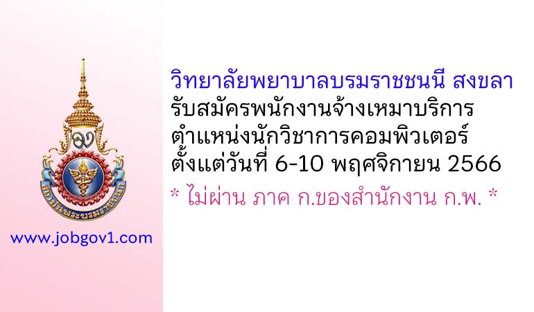 วิทยาลัยพยาบาลบรมราชชนนี สงขลา รับสมัครพนักงานจ้างเหมาบริการ ตำแหน่งนักวิชาการคอมพิวเตอร์ ตั้งแต่วันที่ 6-10 พฤศจิกายน 2566