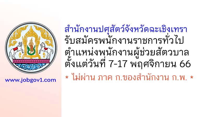 สำนักงานปศุสัตว์จังหวัดฉะเชิงเทรา รับสมัครพนักงานราชการทั่วไป ตำแหน่งพนักงานผู้ช่วยสัตวบาล ตั้งแต่วันที่ 7-17 พฤศจิกายน 2566