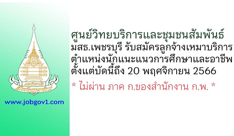 ศูนย์วิทยบริการและชุมชนสัมพันธ์ มสธ.เพชรบุรี รับสมัครลูกจ้างเหมาบริการ ตำแหน่งนักแนะแนวการศึกษาและอาชีพ ตั้งแต่บัดนี้ถึง 20 พฤศจิกายน 2566