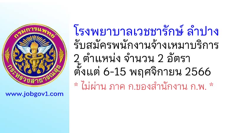 โรงพยาบาลเวชชารักษ์ ลำปาง รับสมัครพนักงานจ้างเหมาบริการ 2 อัตรา ตั้งแต่วันที่ 6-15 พฤศจิกายน 2566