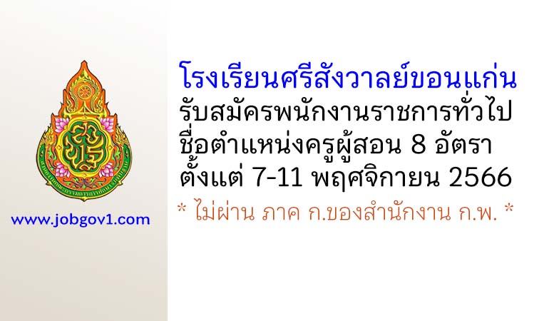 โรงเรียนศรีสังวาลย์ขอนแก่น รับสมัครพนักงานราชการทั่วไป ตำแหน่งครูผู้สอน 8 อัตรา ตั้งแต่วันที่ 7-11 พฤศจิกายน 2566