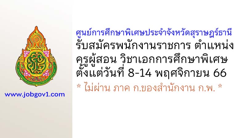 ศูนย์การศึกษาพิเศษประจำจังหวัดสุราษฎร์ธานี รับสมัครพนักงานราชการ ตำแหน่งครูผู้สอน วิชาเอกการศึกษาพิเศษ ตั้งแต่วันที่ 8-14 พฤศจิกายน 2566