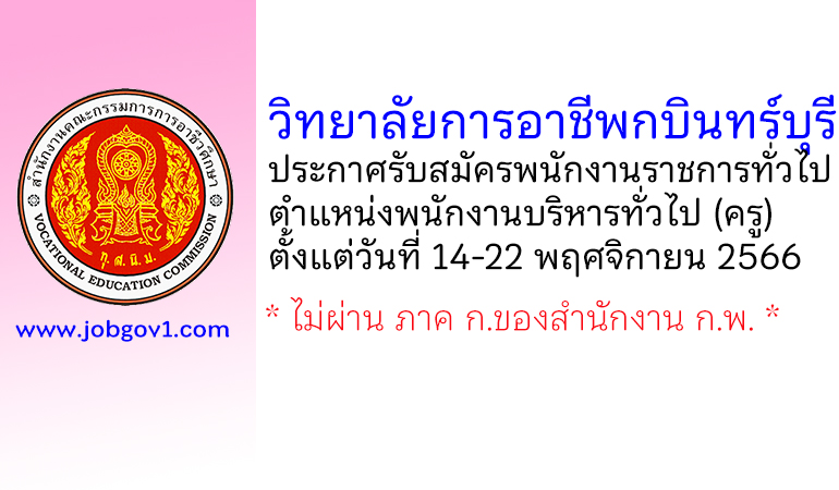 วิทยาลัยการอาชีพกบินทร์บุรี รับสมัครพนักงานราชการทั่วไป ตำแหน่งพนักงานบริหารทั่วไป (ครู) ตั้งแต่วันที่ 14-22 พฤศจิกายน 2566