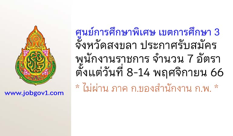 ศูนย์การศึกษาพิเศษ เขตการศึกษา 3 จังหวัดสงขลา รับสมัครบุคคลเพื่อเลือกสรรเป็นพนักงานราชการ 7 อัตรา ตั้งแต่วันที่ 8-14 พฤศจิกายน 2566