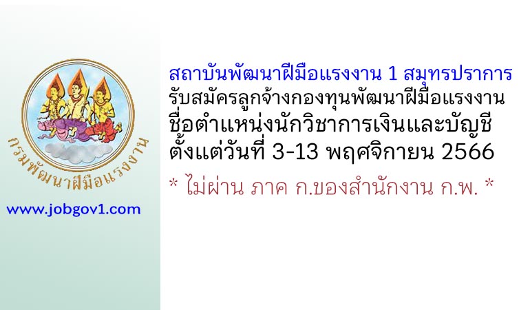 สถาบันพัฒนาฝีมือแรงงาน 1 สมุทรปราการ รับสมัครลูกจ้างกองทุนพัฒนาฝีมือแรงงาน ตำแหน่งนักวิชาการเงินและบัญชี ตั้งแต่วันที่ 3-13 พฤศจิกายน 2566