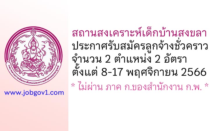 สถานสงเคราะห์เด็กบ้านสงขลา รับสมัครลูกจ้างชั่วคราว จำนวน 2 ตำแหน่ง 2 อัตรา ตั้งแต่วันที่ 8-17 พฤศจิกายน 2566