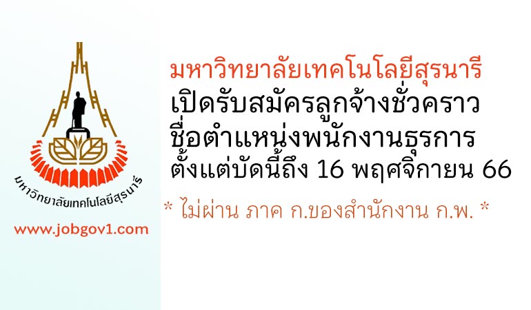 มหาวิทยาลัยเทคโนโลยีสุรนารี รับสมัครลูกจ้างชั่วคราว ตำแหน่งพนักงานธุรการ ตั้งแต่บัดนี้ถึง 16 พฤศจิกายน 2566