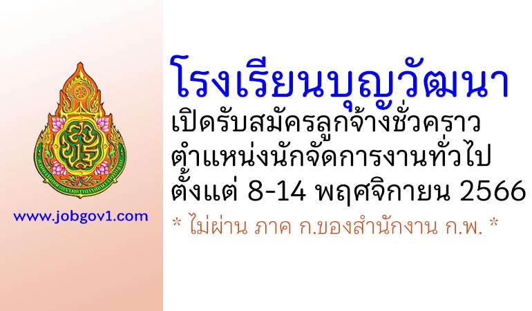 โรงเรียนบุญวัฒนา รับสมัครลูกจ้างชั่วคราว ตำแหน่งนักจัดการงานทั่วไป ตั้งแต่วันที่ 8-14 พฤศจิกายน 2566