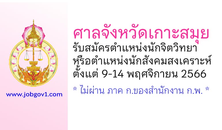 ศาลจังหวัดเกาะสมุย รับสมัครนักจิตวิทยาหรือนักสังคมสงเคราะห์ ตั้งแต่วันที่ 9-14 พฤศจิกายน 2566