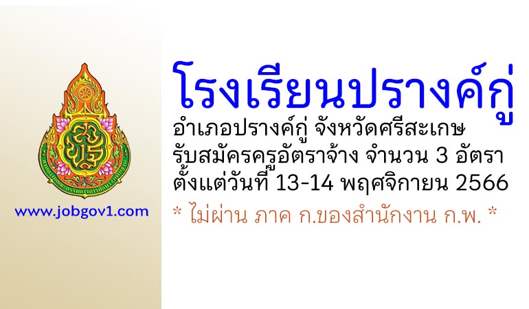 โรงเรียนปรางค์กู่ รับสมัครครูอัตราจ้าง จำนวน 3 อัตรา ตั้งแต่วันที่ 13-14 พฤศจิกายน 2566