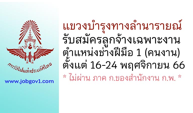 แขวงบำรุงทางลำนารายณ์ รับสมัครลูกจ้างเฉพาะงาน ตำแหน่งช่างฝีมือ 1 (คนงาน) ตั้งแต่วันที่ 16-24 พฤศจิกายน 2566