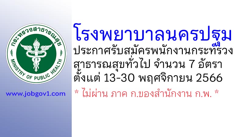 โรงพยาบาลนครปฐม รับสมัครพนักงานกระทรวงสาธารณสุขทั่วไป 7 อัตรา ตั้งแต่วันที่ 13-30 พฤศจิกายน 2566