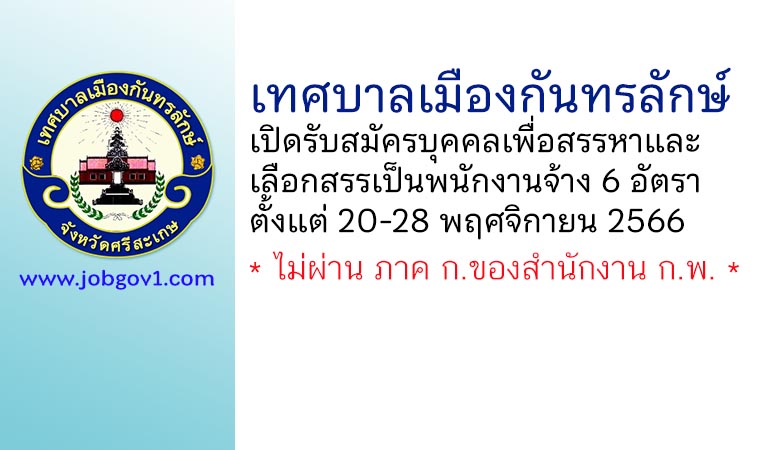 เทศบาลเมืองกันทรลักษ์ รับสมัครบุคคลเพื่อสรรหาและเลือกสรรเป็นพนักงานจ้าง 6 อัตรา ตั้งแต่วันที่ 20-28 พฤศจิกายน 2566