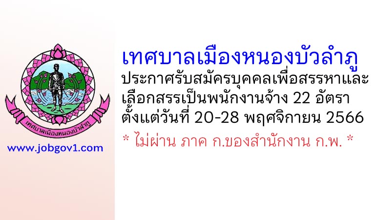เทศบาลเมืองหนองบัวลำภู รับสมัครบุคคลเพื่อสรรหาและเลือกสรรเป็นพนักงานจ้าง 22 อัตรา ตั้งแต่วันที่ 20-28 พฤศจิกายน 2566