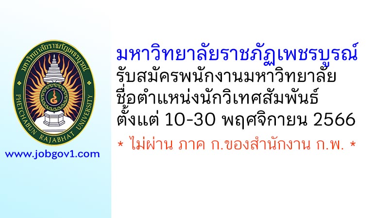 มหาวิทยาลัยราชภัฏเพชรบูรณ์ รับสมัครพนักงานมหาวิทยาลัย ตำแหน่งนักวิเทศสัมพันธ์ ตั้งแต่วันที่ 10-30 พฤศจิกายน 2566