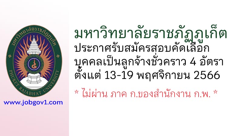 มหาวิทยาลัยราชภัฏภูเก็ต รับสมัครสอบคัดเลือกบุคคลเป็นลูกจ้างชั่วคราว 4 อัตรา ตั้งแต่วันที่ 13-19 พฤศจิกายน 2566