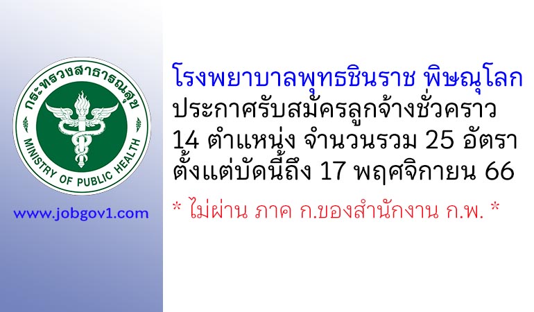 โรงพยาบาลพุทธชินราช พิษณุโลก รับสมัครลูกจ้างชั่วคราว 14 ตำแหน่ง 25 อัตรา ตั้งแต่บัดนี้ถึง 17 พฤศจิกายน 2566