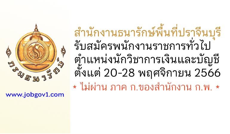 ประกาศจังหวัดปราจีนบุรี เรื่อง รับสมัครบุคคลเพื่อสรรหาและเลือกสรรเป็นพนักงานราชการทั่วไป ตำแหน่งนักวิชาการเงินและบัญชี ประจำสำนักงานธนารักษ์พื้นที่ปราจีนบุรี