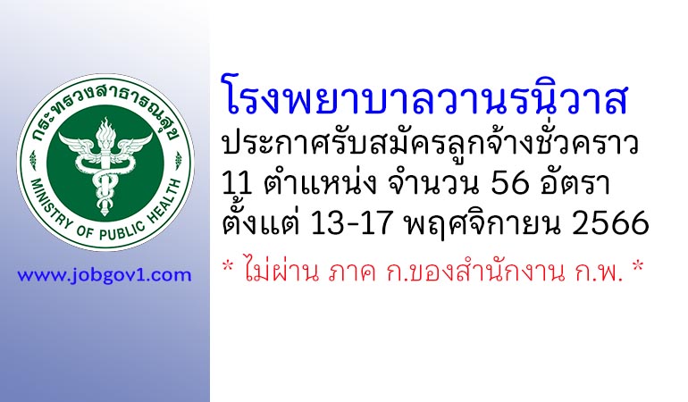 โรงพยาบาลวานรนิวาส รับสมัครลูกจ้างชั่วคราว 11 ตำแหน่ง 56 อัตรา ตั้งแต่วันที่ 13-17 พฤศจิกายน 2566
