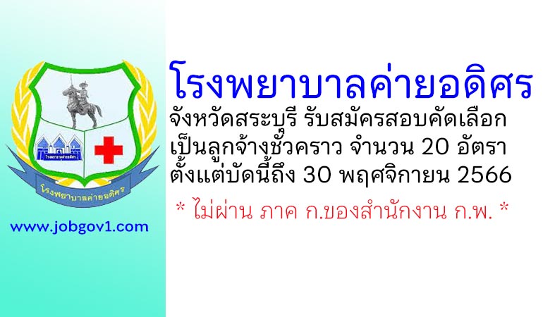 โรงพยาบาลค่ายอดิศร รับสมัครสอบคัดเลือกเป็นลูกจ้างชั่วคราว 20 อัตรา ตั้งแต่บัดนี้ถึง 30 พฤศจิกายน 2566