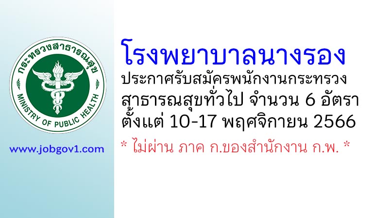 โรงพยาบาลนางรอง รับสมัครพนักงานกระทรวงสาธารณสุขทั่วไป 6 อัตรา ตั้งแต่วันที่ 10-17 พฤศจิกายน 2566