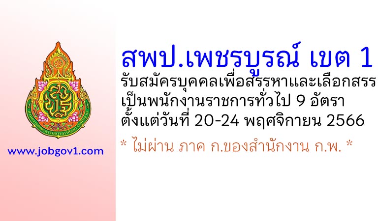 สพป.เพชรบูรณ์ เขต 1 รับสมัครบุคคลเพื่อสรรหาและเลือกสรรเป็นพนักงานราชการทั่วไป 9 อัตรา ตั้งแต่วันที่ 20-24 พฤศจิกายน 2566