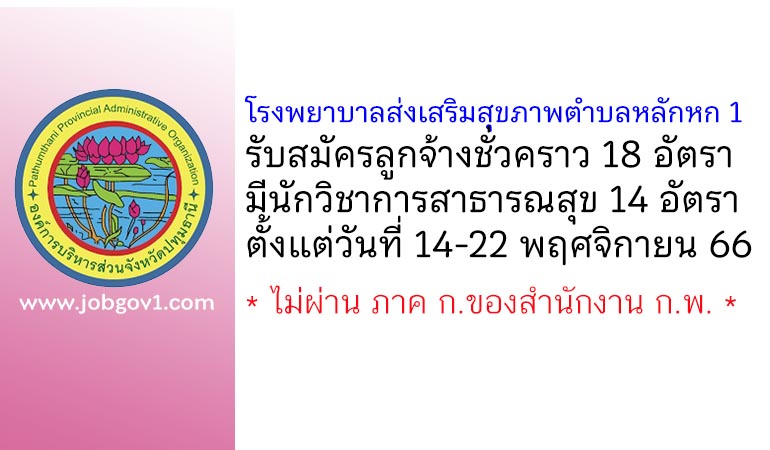 ประกาศโรงพยาบาลส่งเสริมสุขภาพตำบลหลักหก 1 เรื่อง รับสมัครบุคคลเพื่อสรรหาและเลือกสรรเป็นลูกจ้างชั่วคราวรายเดือน (เงินบำรุง) สังกัด โรงพยาบาลส่งเสริมสุขภาพตำบลหลักหก 1 กองสาธารณสุข องค์การบริหารส่วนจังหวัดปทุมธานี