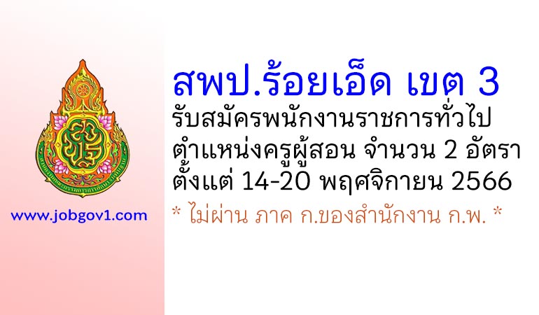 สพป.ร้อยเอ็ด เขต 3 รับสมัครพนักงานราชการ ตำแหน่งครูผู้สอน 2 อัตรา ตั้งแต่วันที่ 14-20 พฤศจิกายน 2566